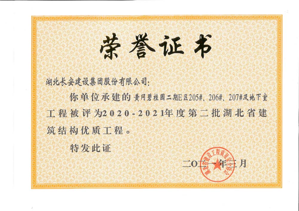 黃岡碧桂園二期E區(qū)205#、206#、207#及地下室2020-2021年度第二批湖北省建筑結(jié)構(gòu)優(yōu)質(zhì)工程