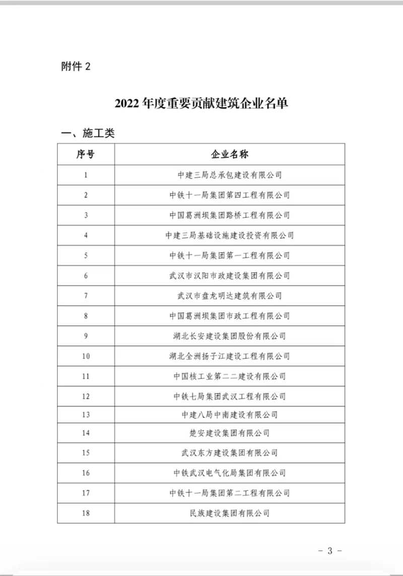 湖北省住建廳授予集團(tuán)公司“2022年度重要貢獻(xiàn)建筑企業(yè)”榮譽(yù)稱號(hào)