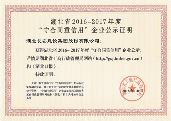 湖北省建筑業(yè)協(xié)會(huì)企業(yè)信用AAA等級(jí)