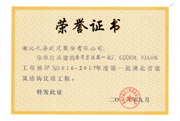 黃岡萬景城1#樓被評為2014-2015省結(jié)構(gòu)優(yōu)質(zhì)