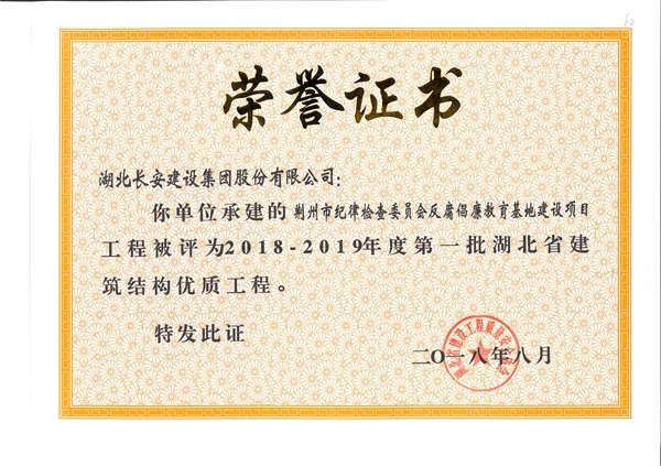 荊州市紀律檢查委員會反腐倡廉教育基地建設(shè)項目工程被評為2018-2019年度第一批湖北省建筑結(jié)構(gòu)優(yōu)質(zhì)工程