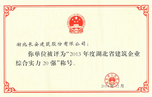 2012-2013年武漢地區(qū)建筑業(yè)優(yōu)秀企業(yè)榮譽(yù)稱號(hào)