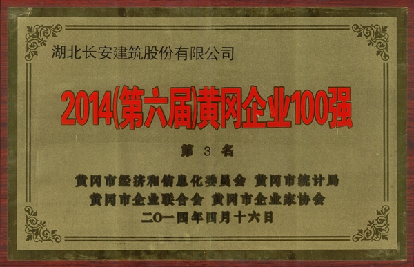 2014年黃岡(第六屆)企業(yè)100強(qiáng)