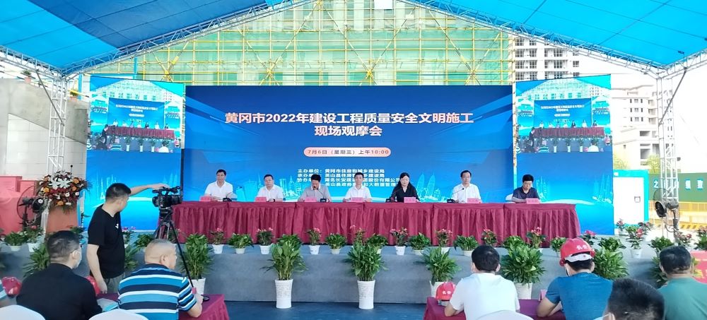 酷暑盛夏,火紅歲月。7月6日,黃岡市2022年建設工程質量安全文明施工現(xiàn)場觀摩活動在湖北長安建設集團承建的英山縣政務服務中心建設項目現(xiàn)場召開。黃岡市住建局黨組成員、副局長徐向華,英山縣縣委副書記、政法委書記張春梅,英山縣住建局黨組書記、局長段衛(wèi)國,英山縣政務服務和大數(shù)據(jù)管理局黨組書記、局長段斌,英山縣應急管理局黨委書記、局長楊晨曦,湖北省人大代表、黃岡市建筑業(yè)協(xié)會會長、英山縣工商聯(lián)主席、湖北長安建設集團董事長段衛(wèi)昌出席此次活動。英山縣人民政府黨組成員、副縣長陳瓊主持。