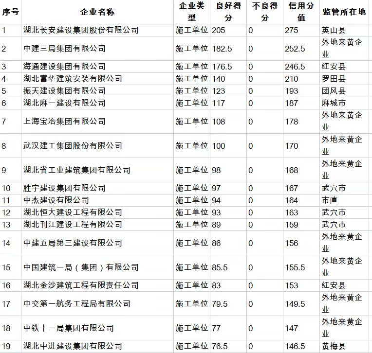 近日,黃岡市2023年度建筑市場主體第一期信用評價結(jié)果公布,集團(tuán)公司良好得分205分、不良得分0分、信用分值275分,榮膺黃岡市2023年度建筑市場主體第一期信用評價第一名。