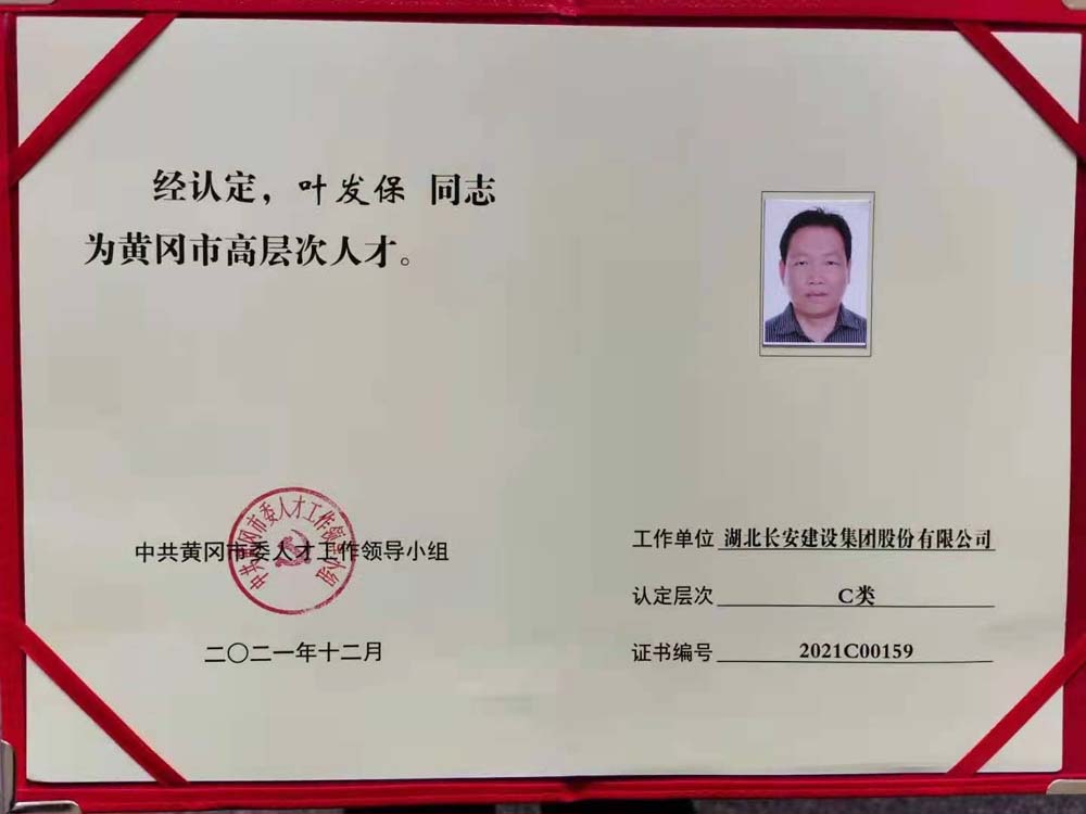集團(tuán)總經(jīng)理葉發(fā)保榮獲“黃岡市高層次人才”稱(chēng)號(hào)