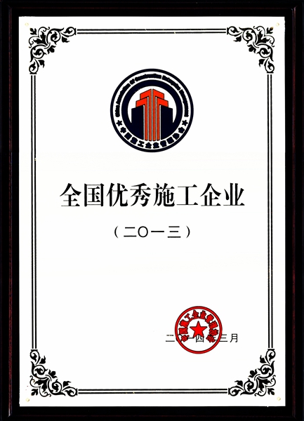 2013年度全國(guó)優(yōu)秀施工企業(yè)獎(jiǎng)牌