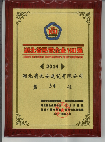 湖北省民營(yíng)企業(yè)100強(qiáng)(34位)2014