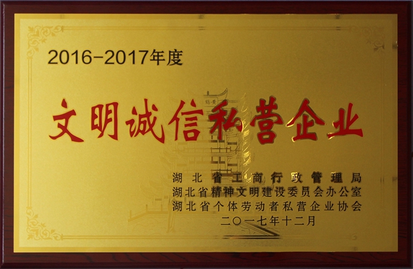公司被評為2016-2017年度“湖北省文明誠信私營企業(yè)”2017