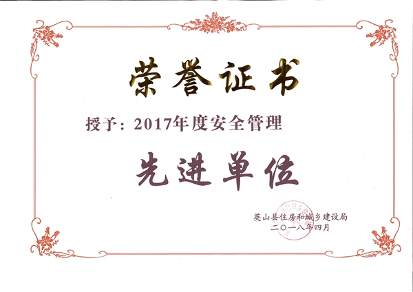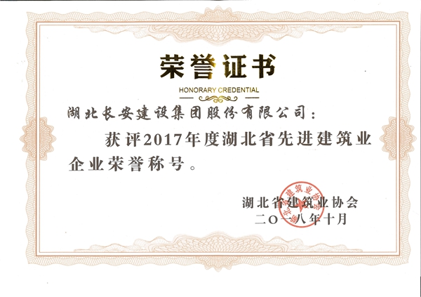 2017年度湖北省先進建筑業(yè)企業(yè)榮譽稱號