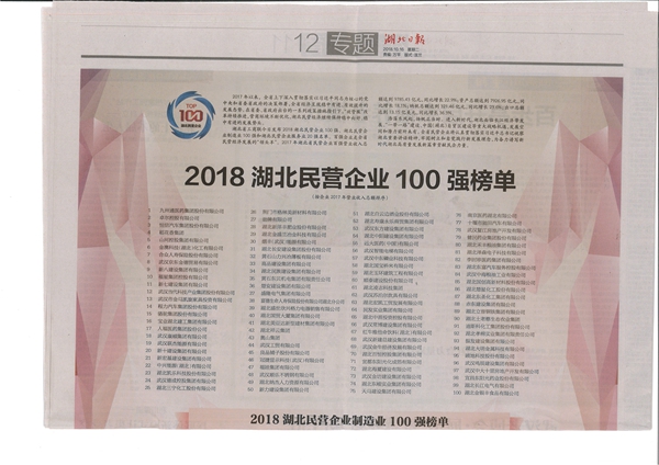 2017年度湖北省新民營經(jīng)濟企業(yè)之星100強先進單位2018