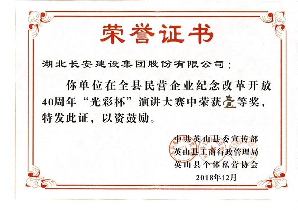 公司在全縣民營企業(yè)紀念改革開放40周年“光彩杯”演講大賽中榮獲一等獎