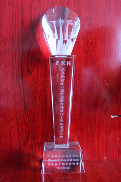 全縣民營企業(yè)紀念改革開放40周年“光彩杯”演講大賽中榮獲一等獎(獎杯)