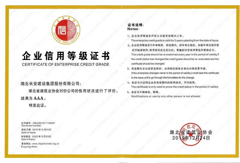 湖北省建筑業(yè)協(xié)會企業(yè)信用AAA等級