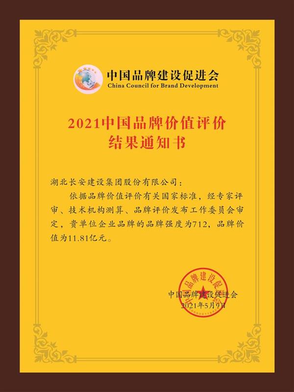9月2日,英山縣市場監(jiān)督管理局黨組書記、局長鄭登峰一行來到湖北長安建設集團股份有限公司(簡稱“長安建設集團”)送達2021年中國品牌價值評價結果通知書。長安建設集團品牌新近獲得了好成績:全國建筑建材組第14名、黃岡市第1名、品牌強度712、品牌價值11.81億元。